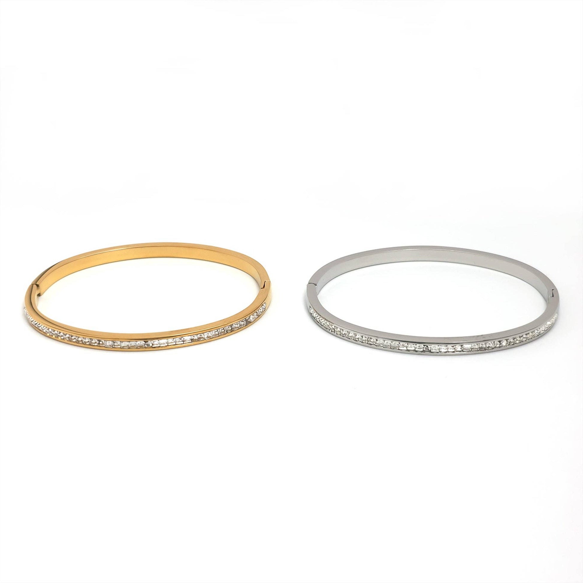 Gold or Silver Dainty Stainless Steel CZ Stacked Bangle Bracelet-00041 Bracelet-00042